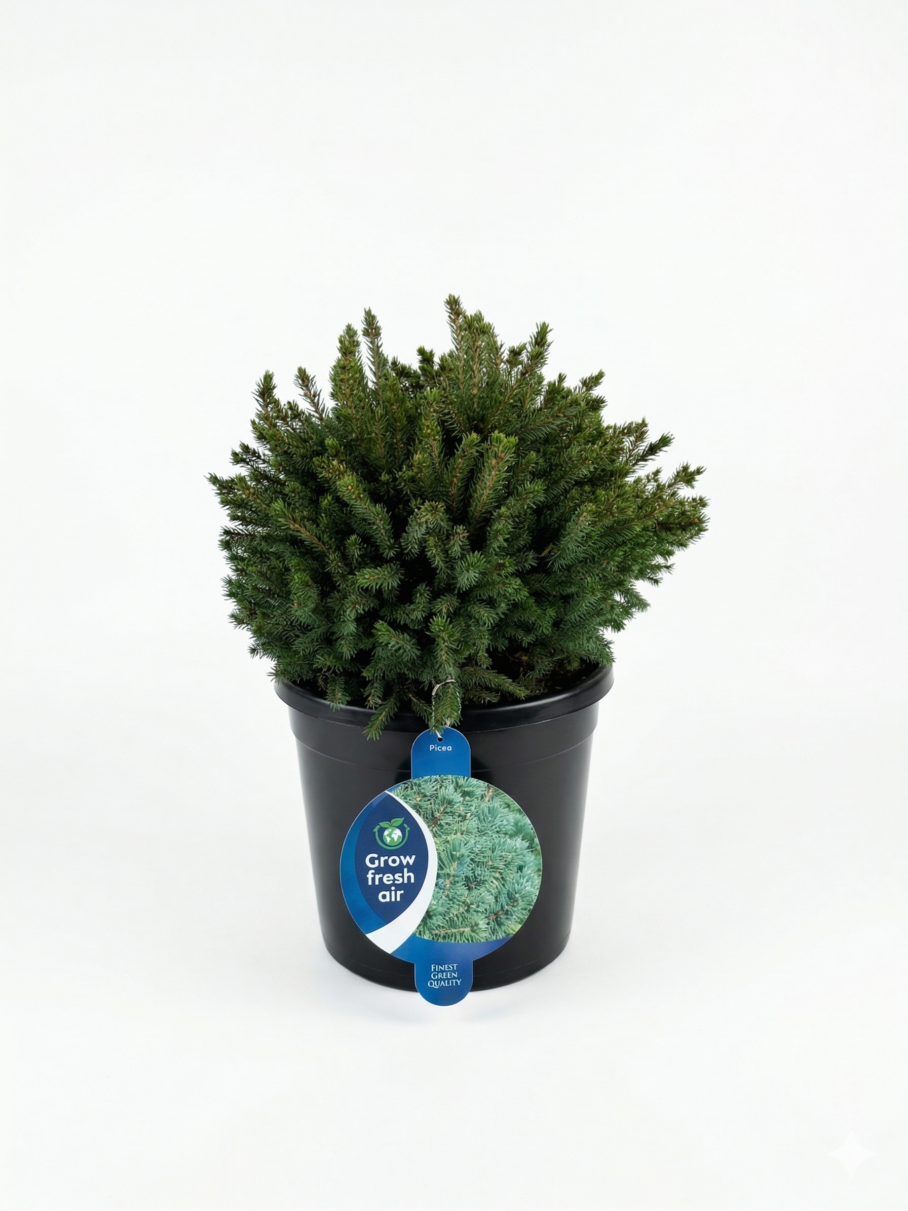 Гъст и компактен смърч с наситено зелени иглички, който създава свеж и естествен вид през цялата година. Подходящ за градини, балкони и дори като жива коледна елха.
