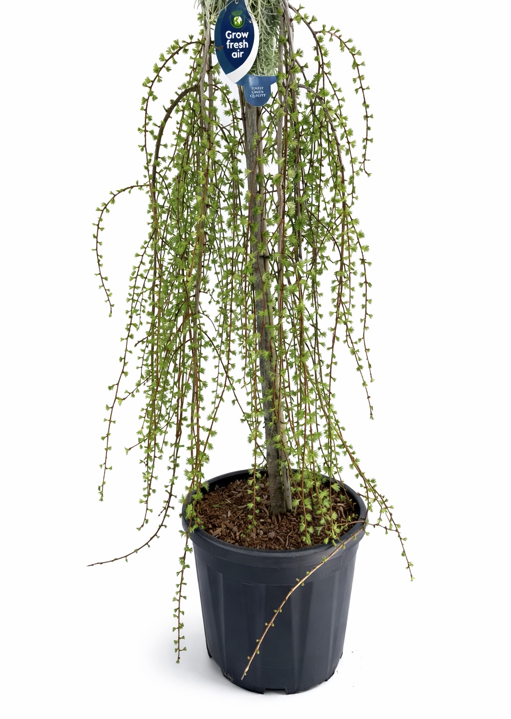 Larix kaempferi ‘Stiff Weeping’ е изключително декоративен сорт японска лиственица с характерни увиснали клони и елегантна форма. За разлика от повечето иглолистни, тя е листопадна – игличките ѝ пожълтяват и опадат през есента, което създава допълнителен сезонен ефект. Подходяща за акцент в градина или декоративни композиции, като придава уникален и архитектурен вид.